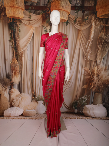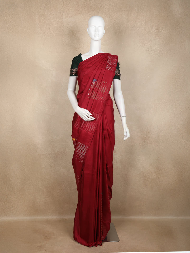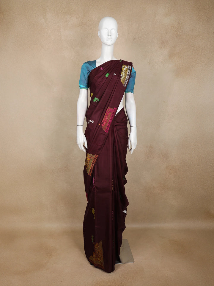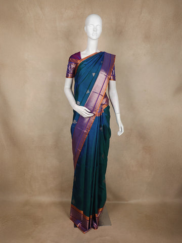 Violet Floral Motifs Pure Kanchipuram Silk Saree - Diadem