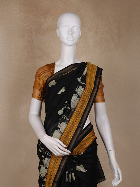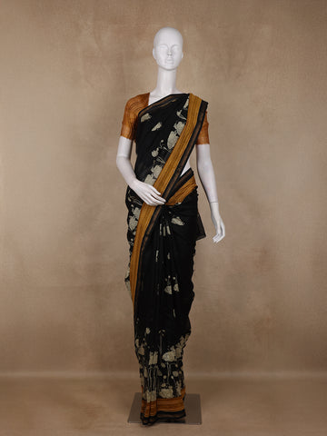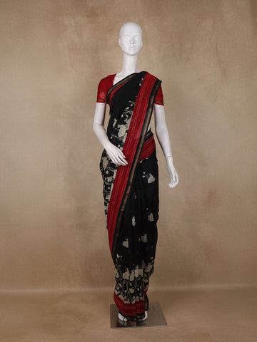 Dark Red Floral Designed Raw Silk Saree - Diadem