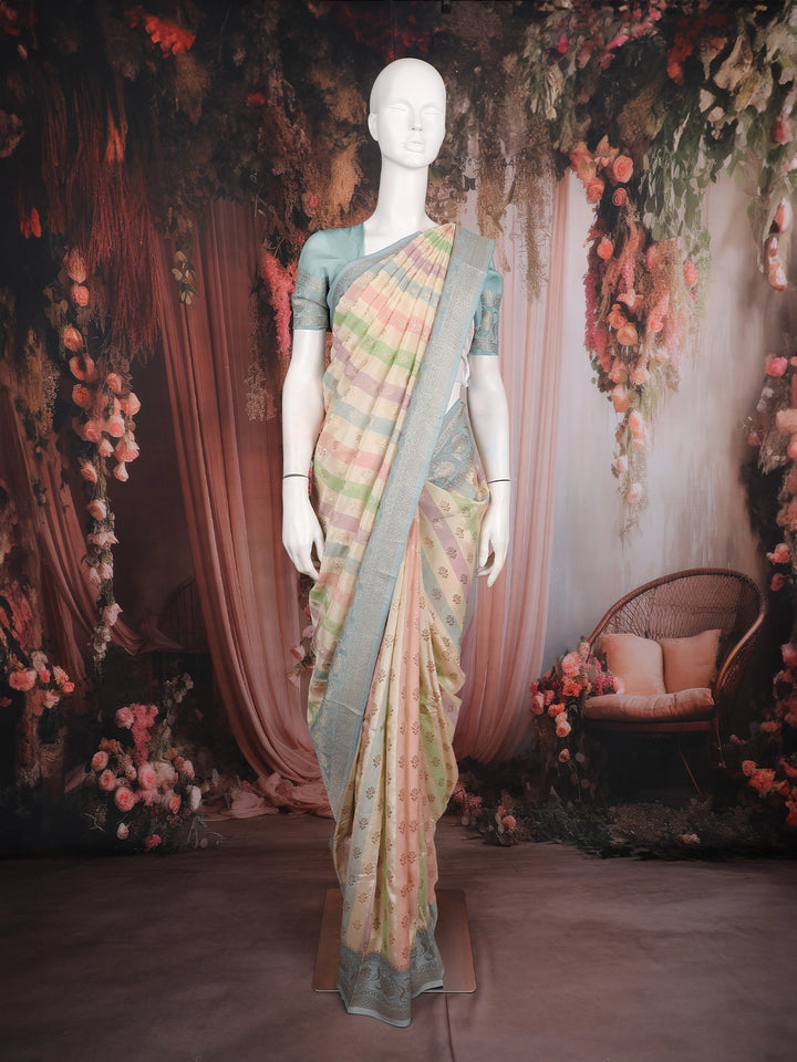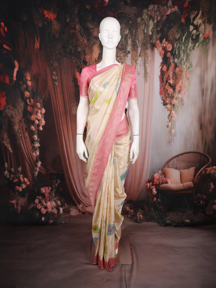 Pale Pink Satin Ready To Wear Saree With Plain Body Paired with Designer Blouse - Diadem