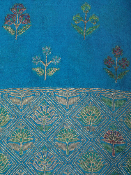 Teal Blue Floral Design Banarasi Silk Saree - Diadem