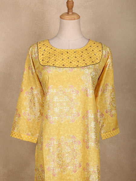 Yellow Cotton Floral Printed Salwar Suit - Diadem