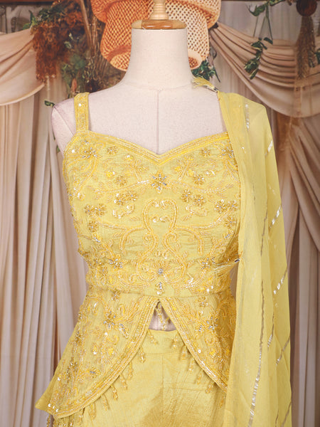 Yellow Sharara Suits Adorned with Sequins and Water Drop Design with Dupatta - Diadem