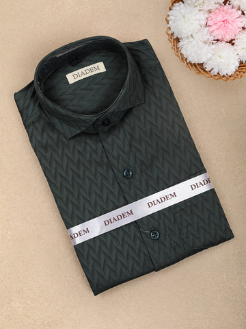 Bottle Green Mirror Work And Floral Embroidery Crepe Gown - Diadem
