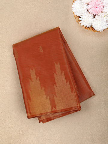 Burnt Orange Floral Design Zari Work Tissue Silk Saree - Diadem