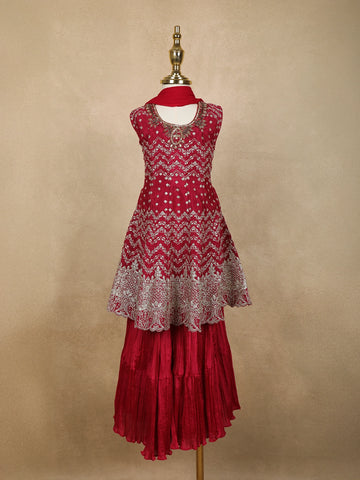 Dark Pink Palazzo Suit Adorned with Floral Embroidery, With Dupatta and 3/4 Sleeve - Diadem