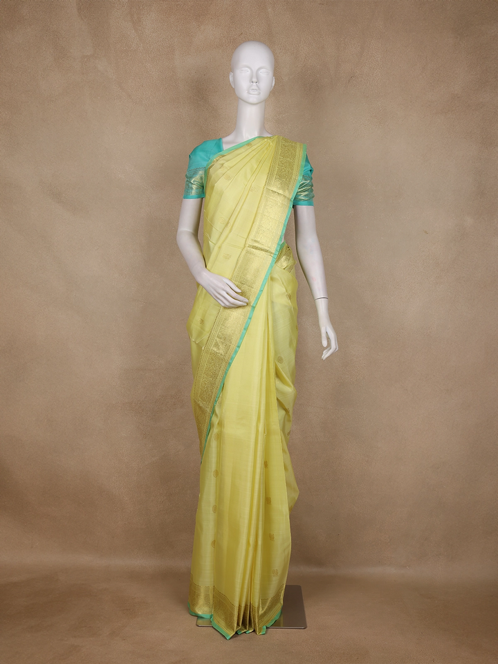 Mustard Yellow Paisley Design Banarasi Silk Saree - Diadem