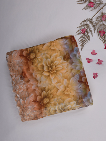 Yellow Floral Prints Fancy Georgette Saree - Diadem