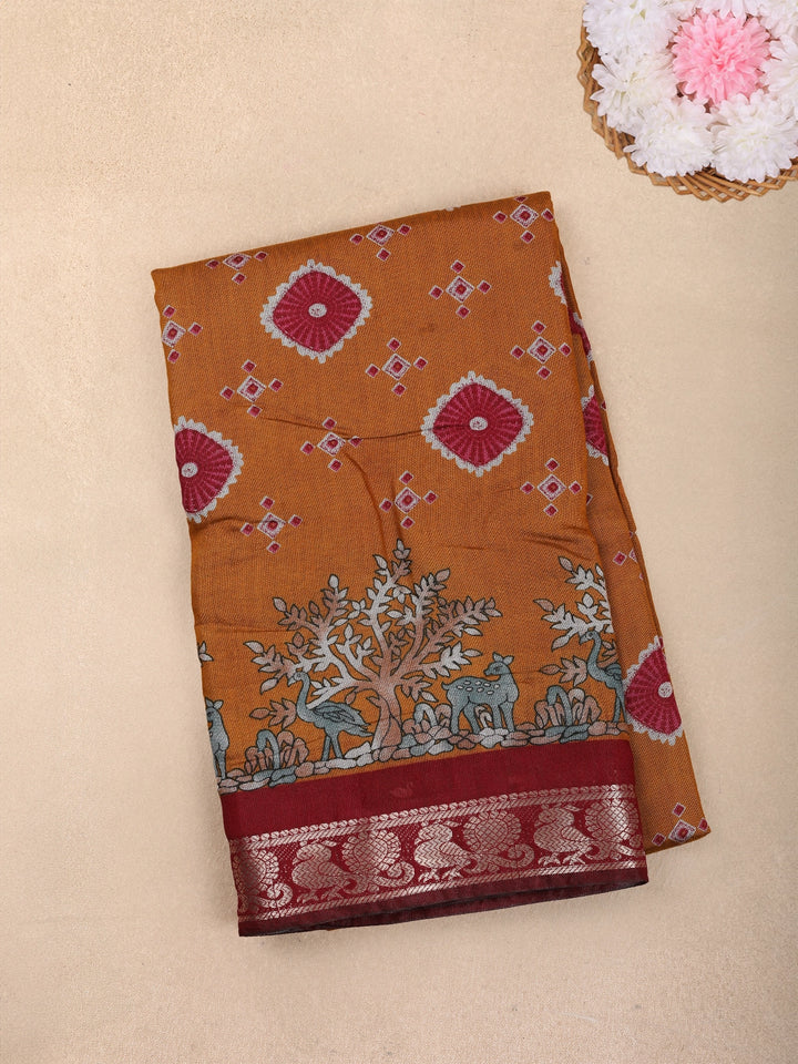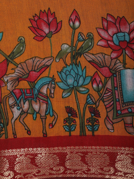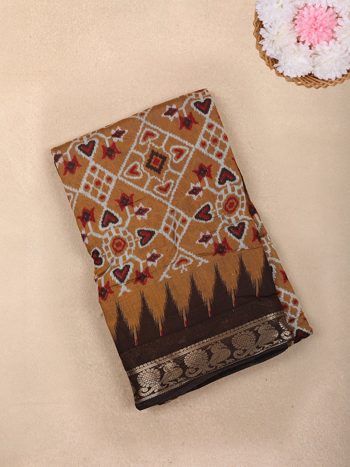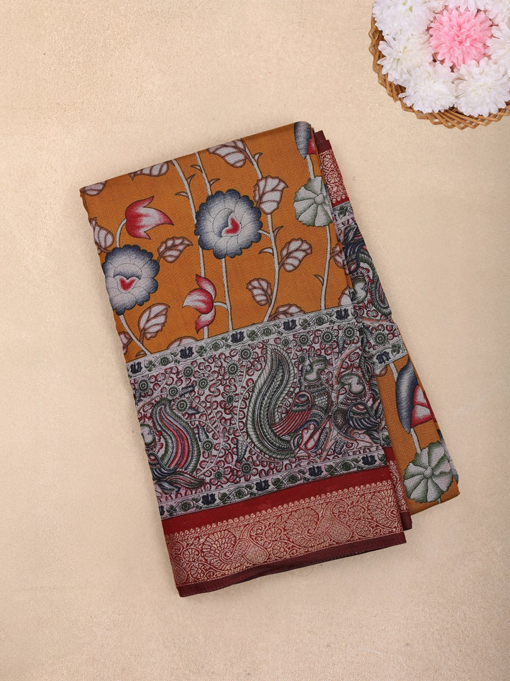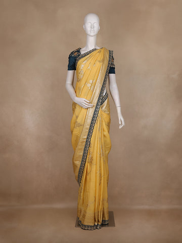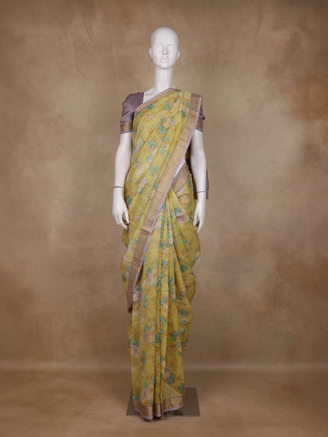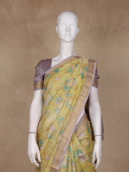 Yellow Floral Designed Fancy Cotton Saree - Diadem