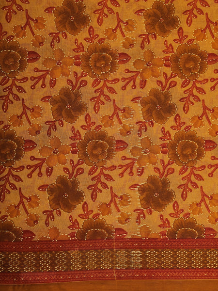 Mustard Yellow Floral Design Cotton Saree - Diadem