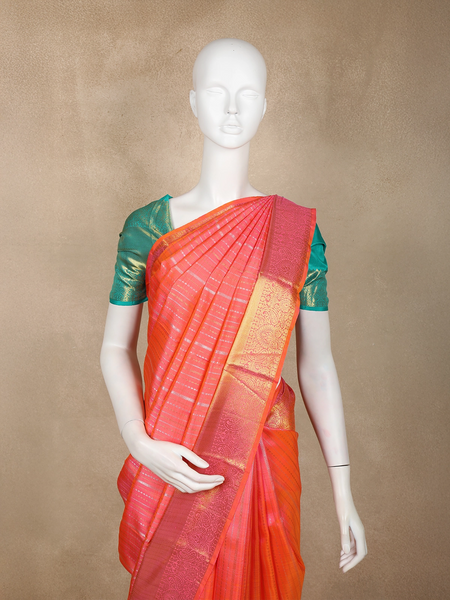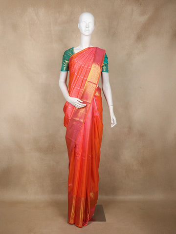 Orange Floral Motif Banarasi Silk Saree - Diadem