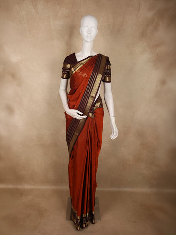 An apricot orange saree in Chennai is a perfect choice for the city's climate and its love for bright, yet refined, colours. The shade complements the warm lighting of traditional South Indian events while standing out with its subtle vibrancy.