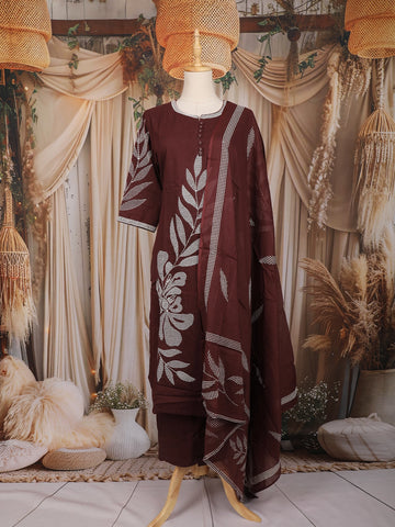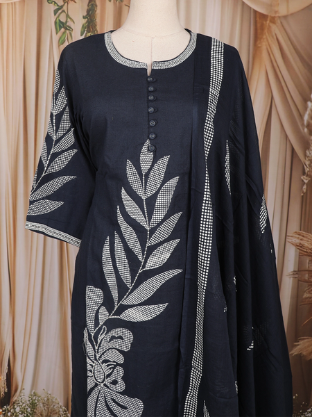 Black Floral Designed Cotton Salwar Suit - Diadem