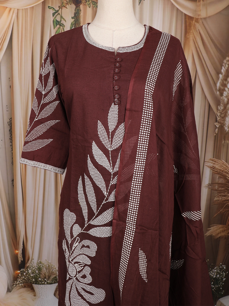 Red Floral Designed Cotton Salwar Suit - Diadem