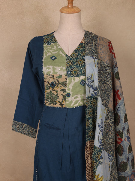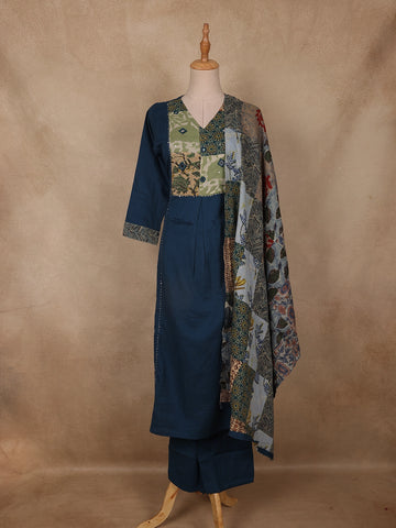 Blue Abstract Designed Cotton Salwar Suit - Diadem