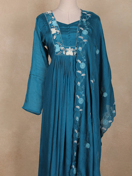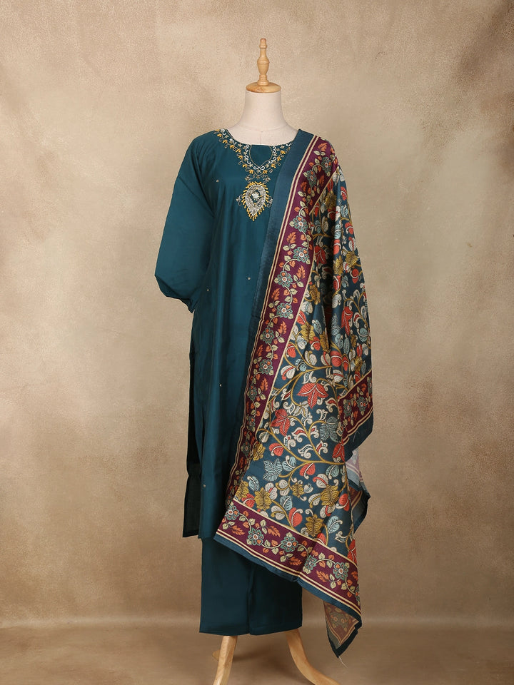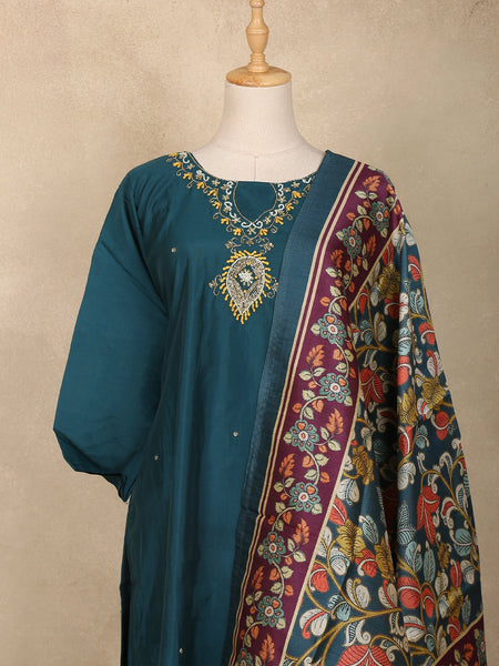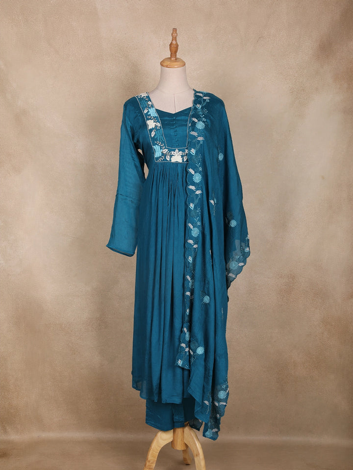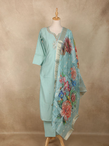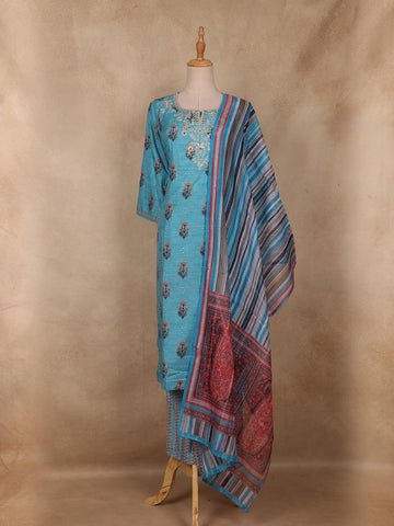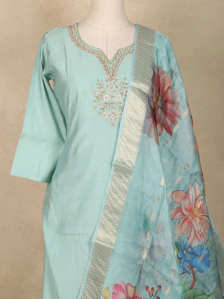 Aqua Blue Semi Silk Salwar Suit with Embroidery - Diadem