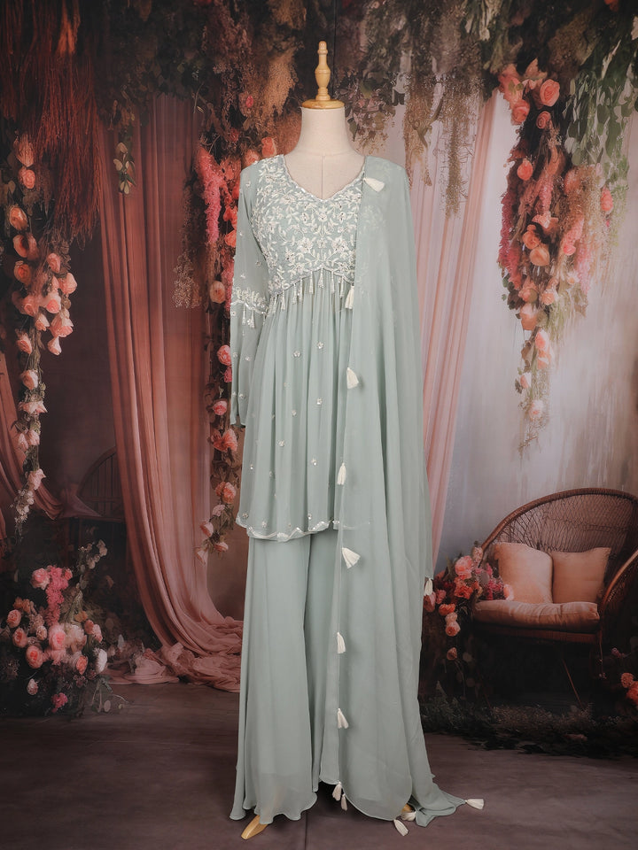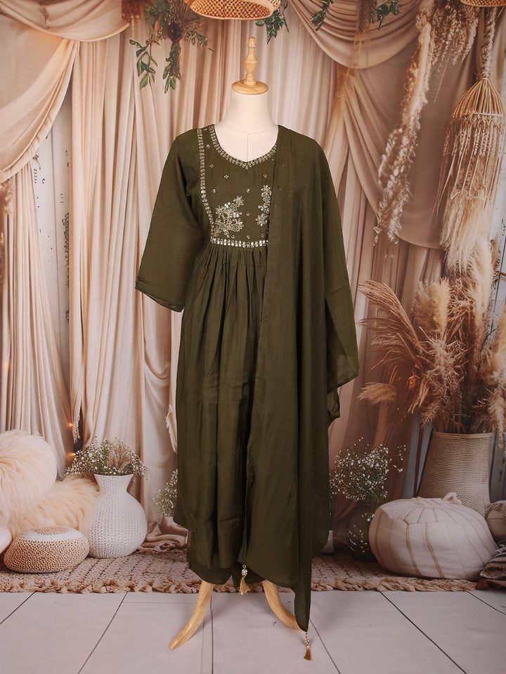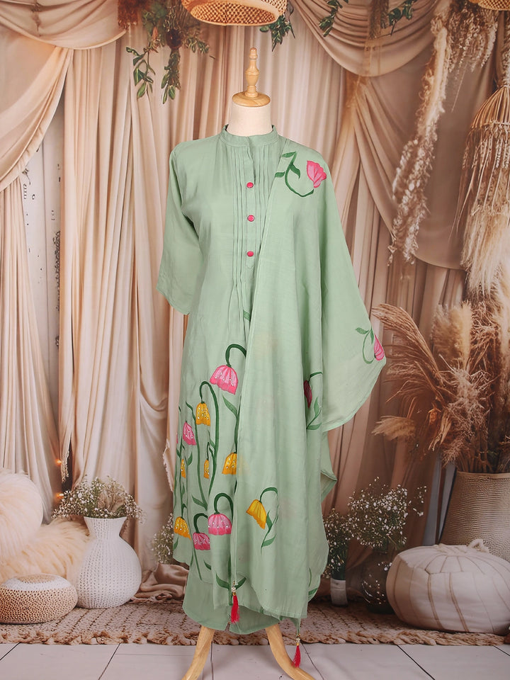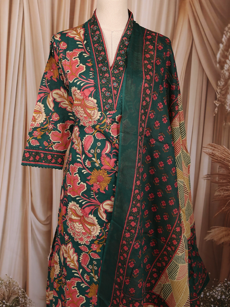 Light Green Floral Design Cotton Salwar Suit With Dupatta - Diadem