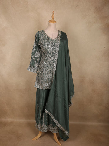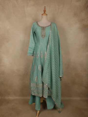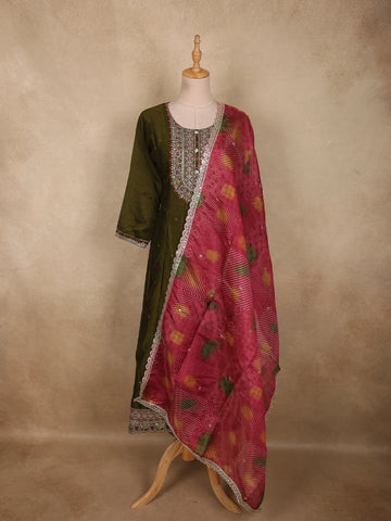 Green Floral Designed Cotton Rayon Salwar Suit - Diadem