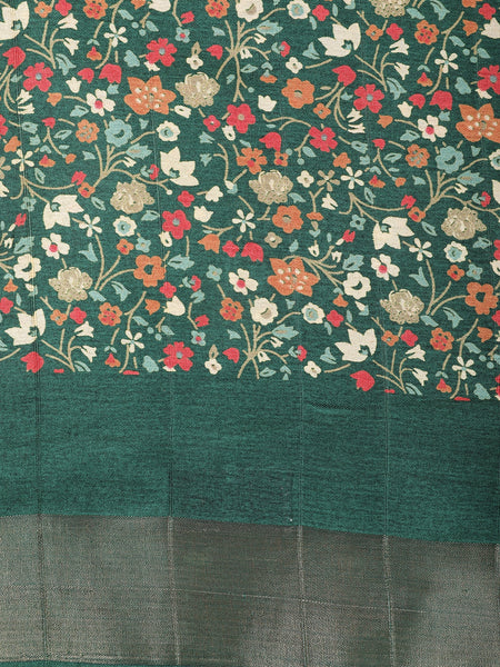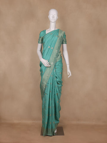 Green Semi Tussar Silk Floral Designed Saree - Diadem