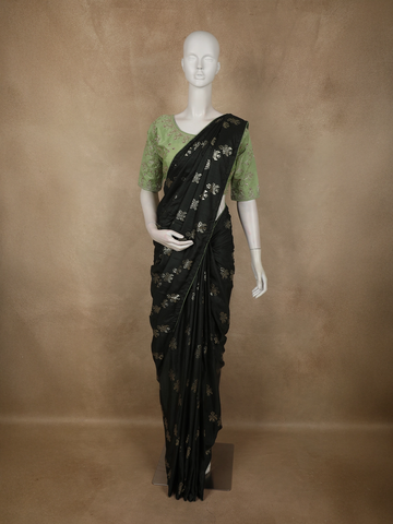 • Silver Sequinned Blouse: Ideal for modern chiffon, tissue, or organza green sarees