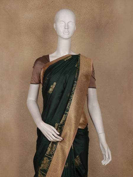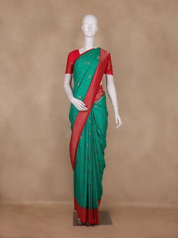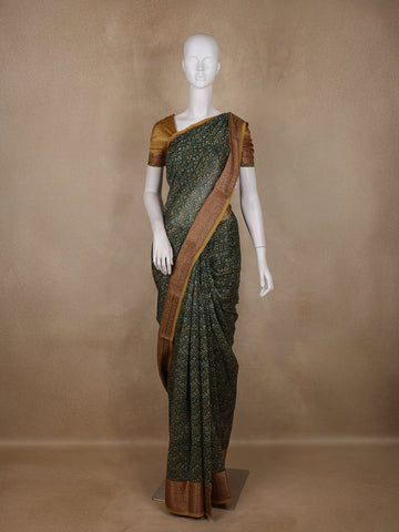 Green Semi Banarasi Saree with Floral Motif on the body and Zari Border - Diadem