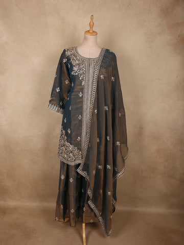 Grey Floral Designed Silk Salwar Suit - Diadem