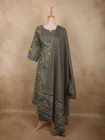 Grey Floral Printed Cotton Salwar Suit - Diadem