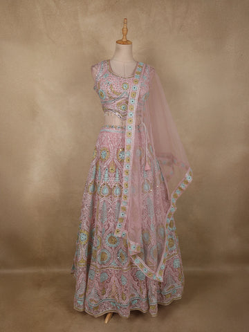 Step into a world of opulence with our pink embroidered lehenga, made from luxurious fabric and embellished with exquisite embroidery with fine threads. This exquisite pink lehenga choli creates a stunning visual impact and is considered ideal for festive occasions and celebrations.