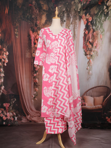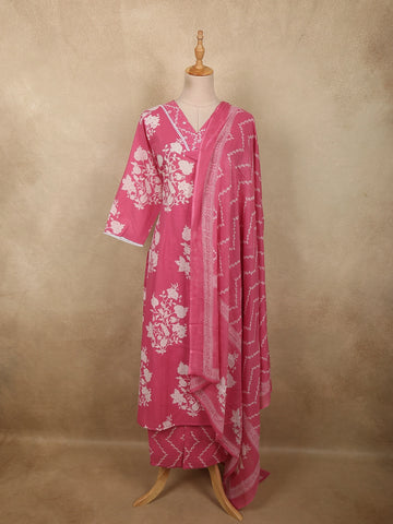 Pink Floral Mottif Printed Cotton Salwar Suit - Diadem