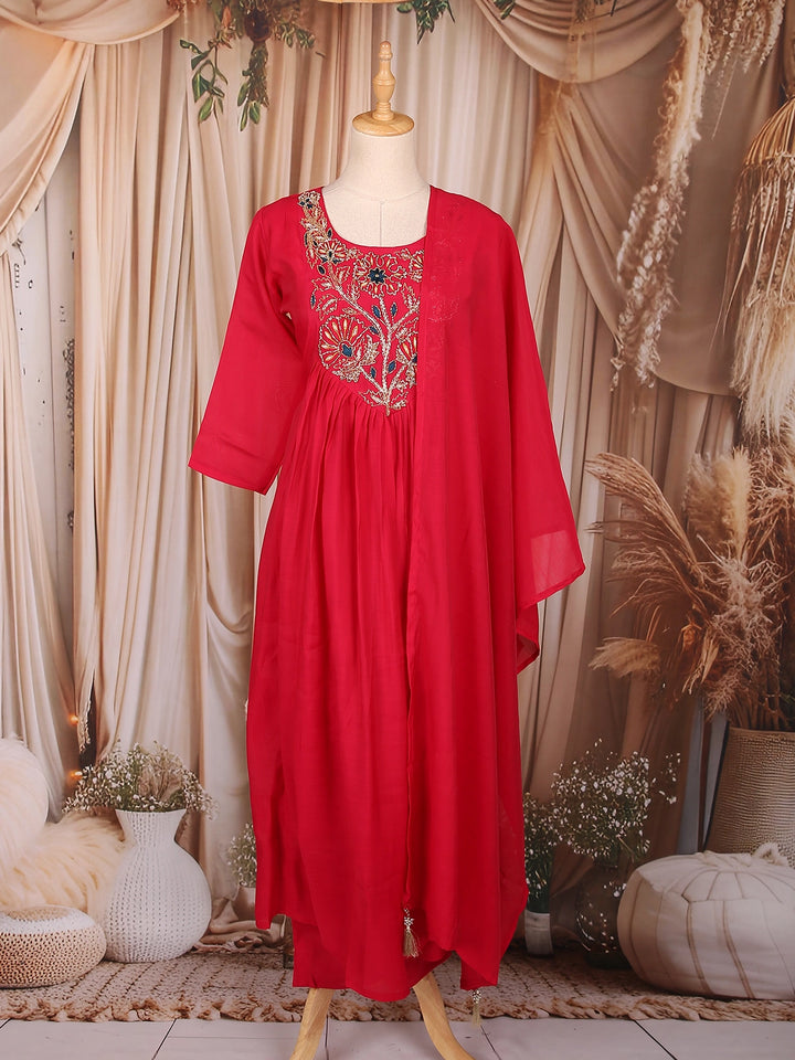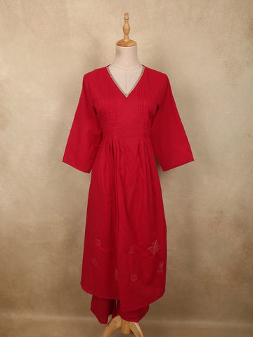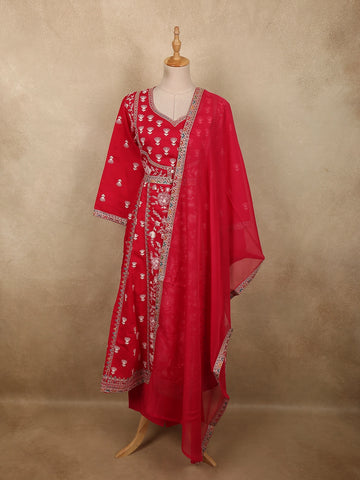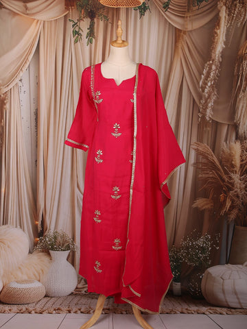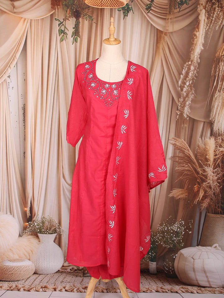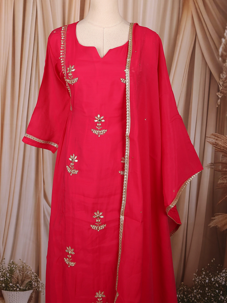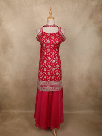 Red Pink with Pista Green Palazzo Salwar Suit Adorned with Thread work - Diadem