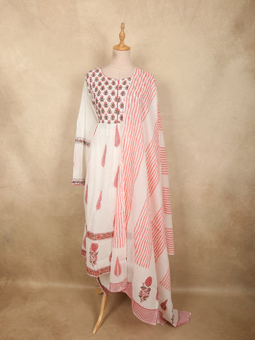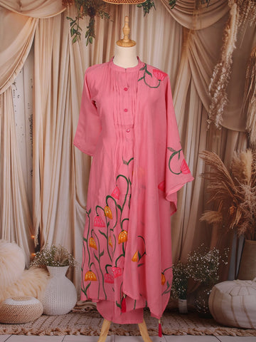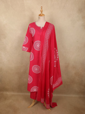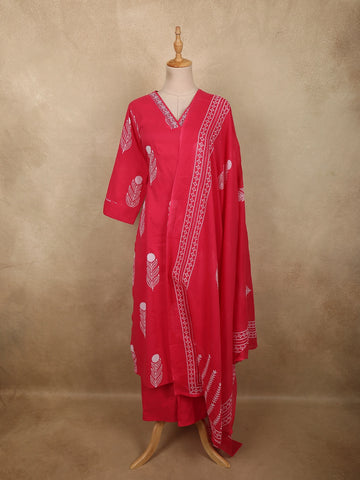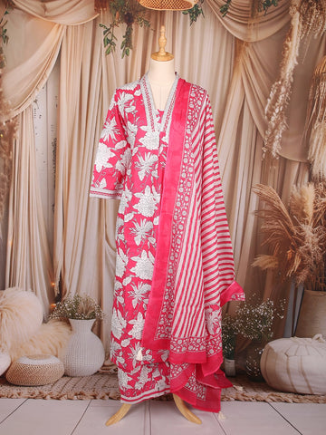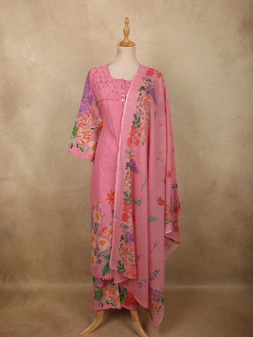 Pink Floral Designed Cotton Salwar Suit - Diadem