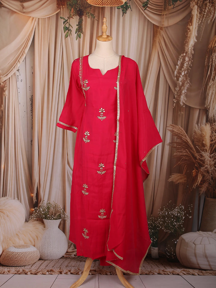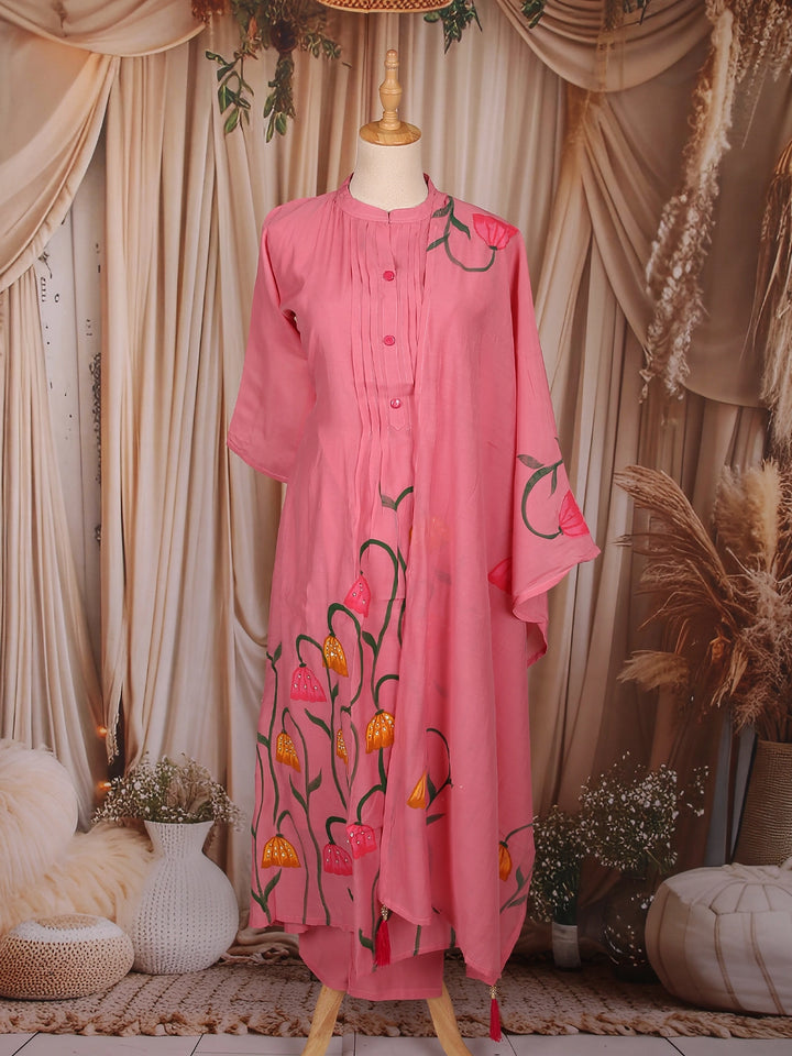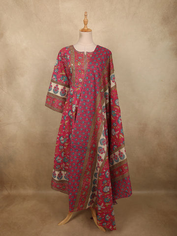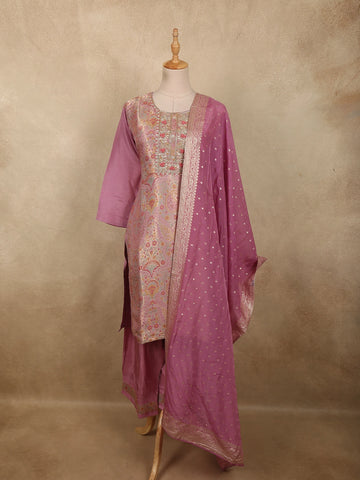 Onion Pink Floral Designed Salwar Suit - Diadem