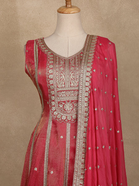 Rani Pink Floral Woven Design Banarasi silk Salwar Suit - Diadem