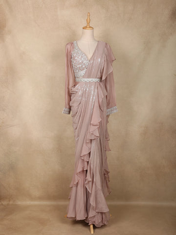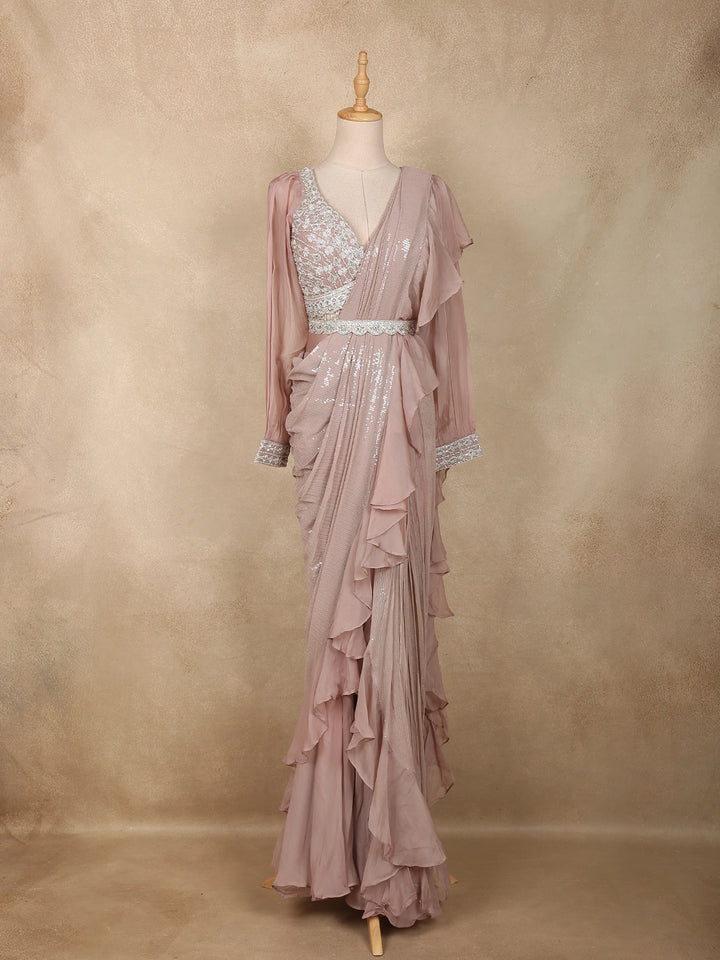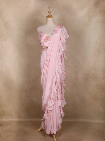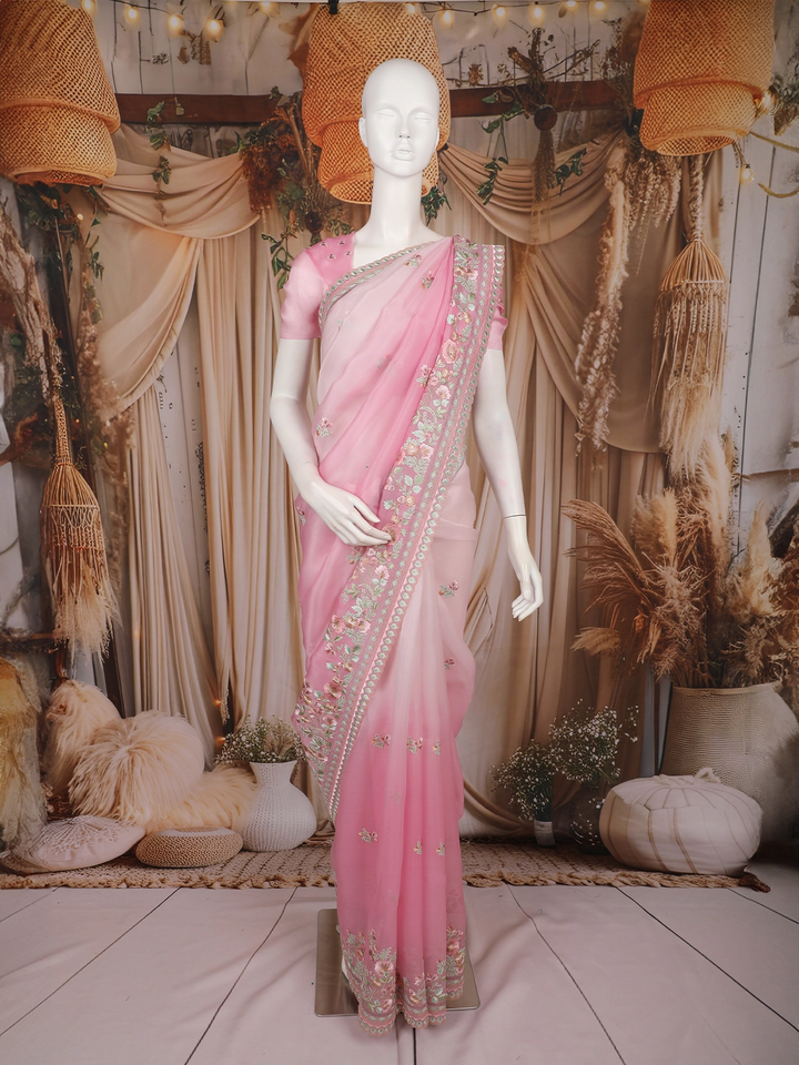 Pink Floral Prints Fancy Georgette Saree - Diadem
