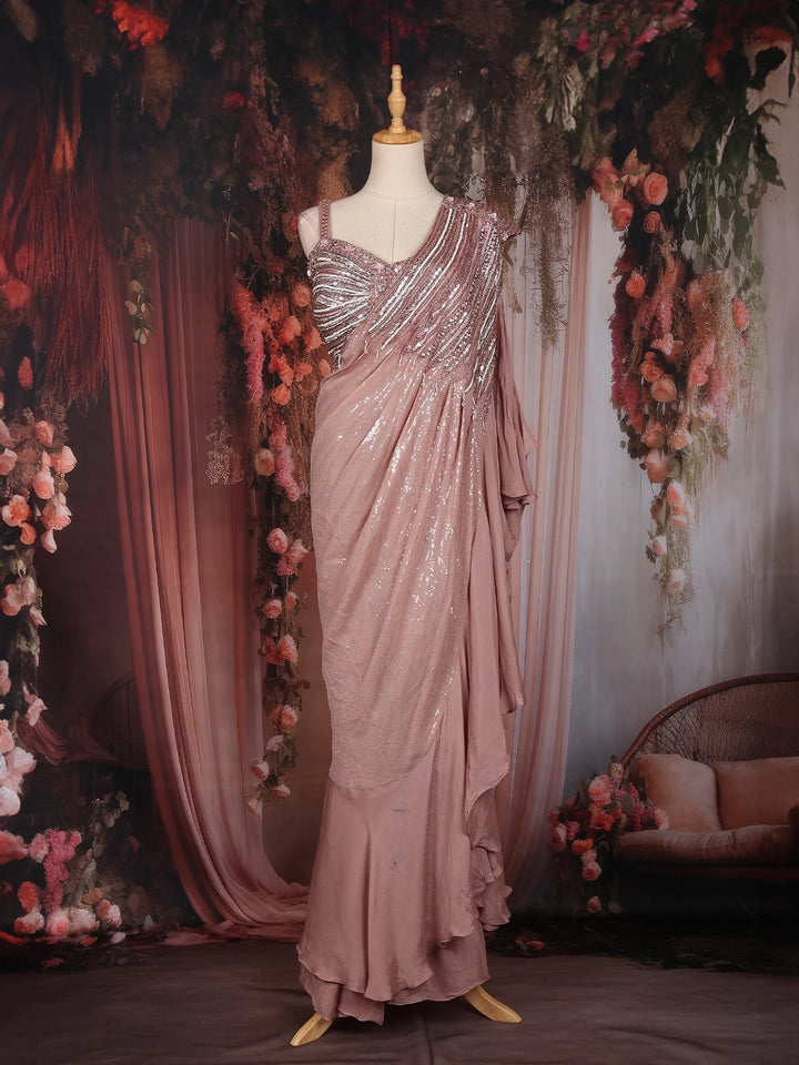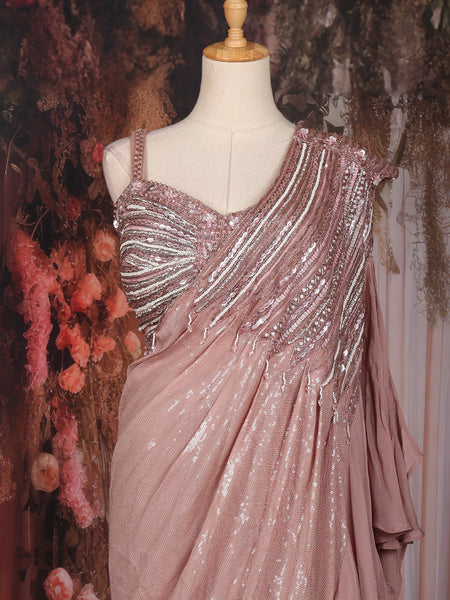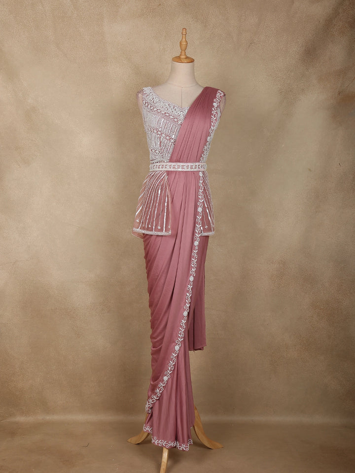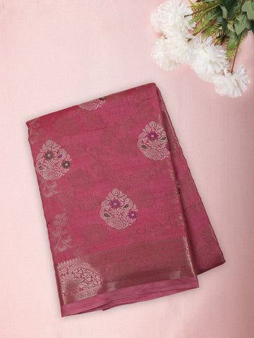 Dusty Rose Pink Geometric Woven Pattern with Floral Design Soft Silk Saree - Diadem