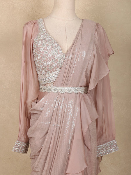 Pale Pink Semi Tussar Silk Saree with Chevron Design and Contrast Blouse - Diadem
