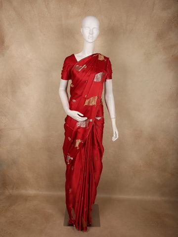 Make a bold statement with our exquisite red Banarasi saree for weddings, which is also perfect for festive celebrations.