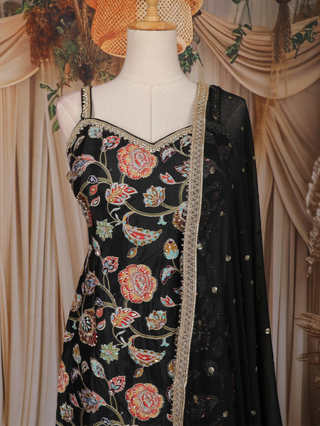 Black Floral Designed Cotton Salwar Suit - Diadem