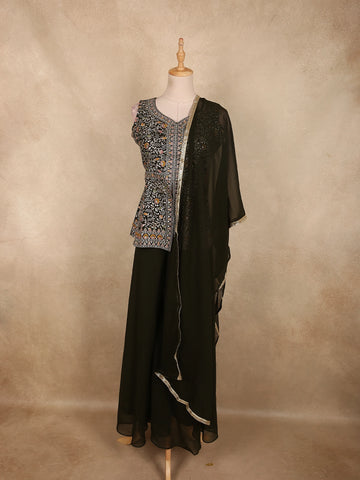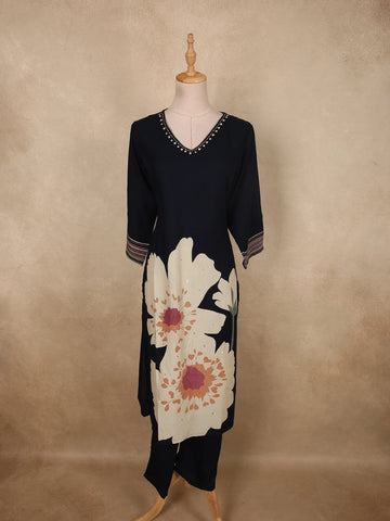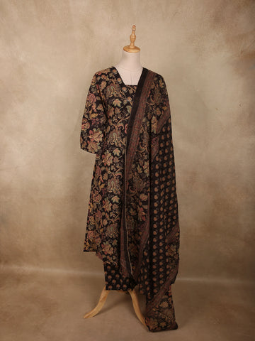 Black Floral Designed Cotton Salwar Suit - Diadem