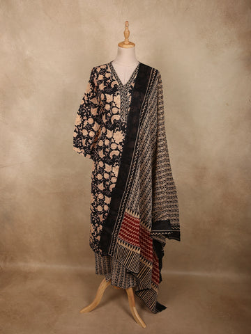 Black Ajrakh Design Printed Cotton Salwar Suit - Diadem