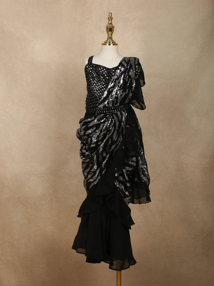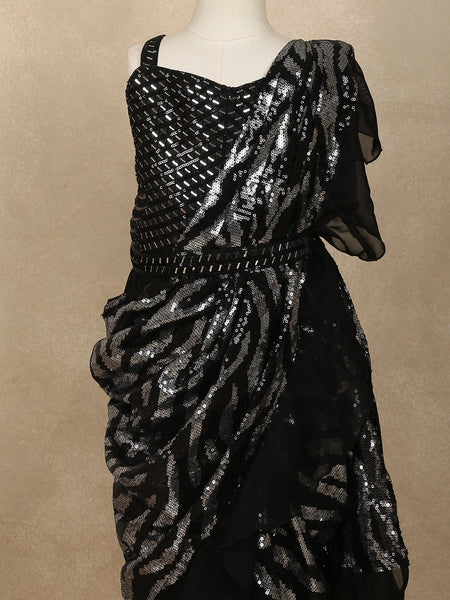 Black sarees never go out of style. Whether you want a minimalist statement or a bold festive look, this saree is a wardrobe essential.