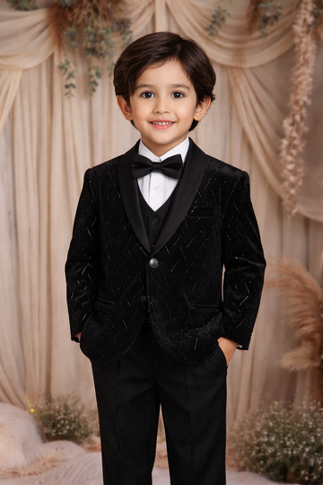 Nothing exudes class and elegance quite like our kids tuxedos. Our tuxedo party wear dress for boys is crafted with attention to detail, featuring sleek designs. Ideal for black-tie events and special occasions, these outfits ensure your child grabs attention.