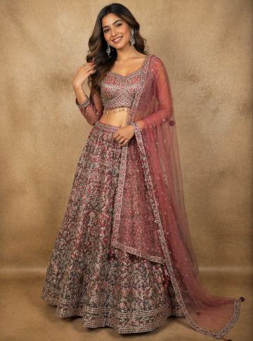 1) Net Bridal Lehenga