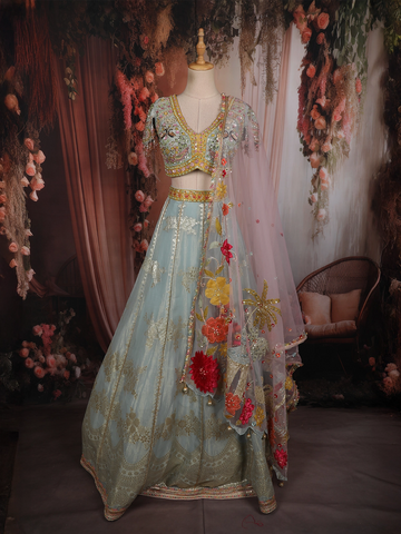 Elevate your wedding style with our Bridesmaid Lehenga, crafted from premium georgette and silk blends for lightweight comfort. Designed with intricate embroidery and shimmering details, this Designer Wedding Lehenga ensures effortless elegance for every bridesmaid. Available in trending pastel shades, each outfit comes with a matching blouse and dupatta—perfect for coordinated group looks and timeless wedding photographs.