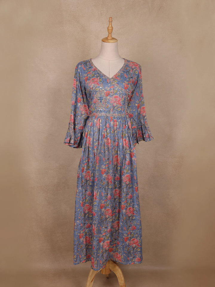 Brown Cotton Kurtis Embellished with Sequins and Embroidery Floral Designs without Dupatta - Diadem
