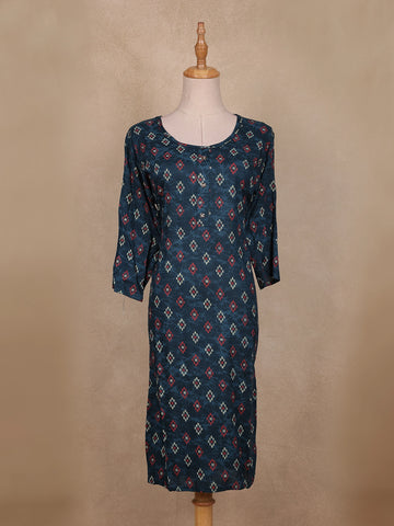 Sea Green Geometric Printed Cotton Kurti - Diadem