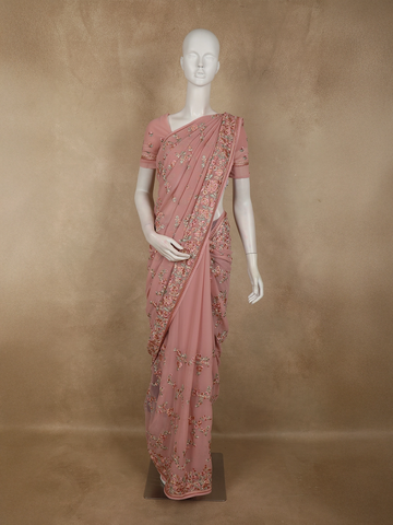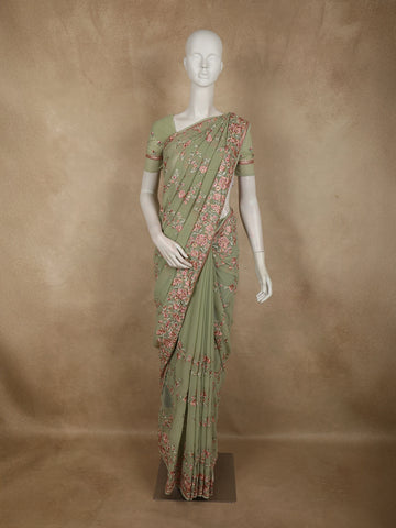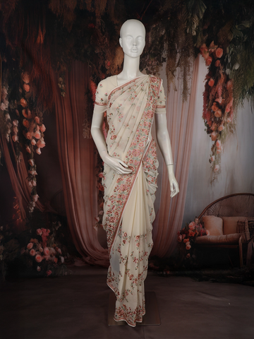 Light Yellow Floral Designed Chiffon Saree - Diadem