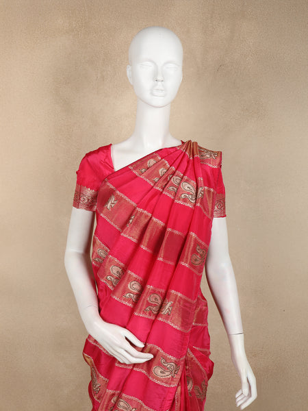 Dark Pink Floral Designed Fancy Art Silk Saree - Diadem