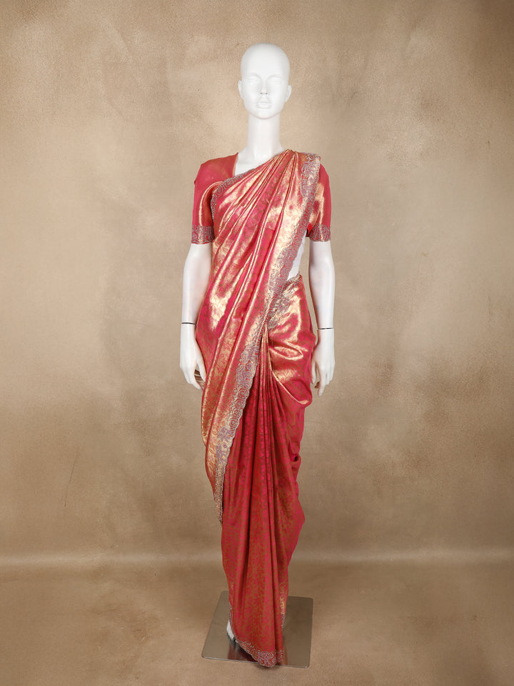 Coral Floral Designed Fancy Art Silk Saree - Diadem