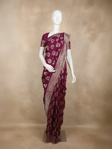Burgandy Organza Saree with Stone and Crush Design on the Body with Designed Border - Diadem