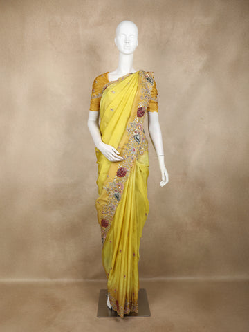 Green Floral Designed Fancy Art Silk Saree - Diadem
